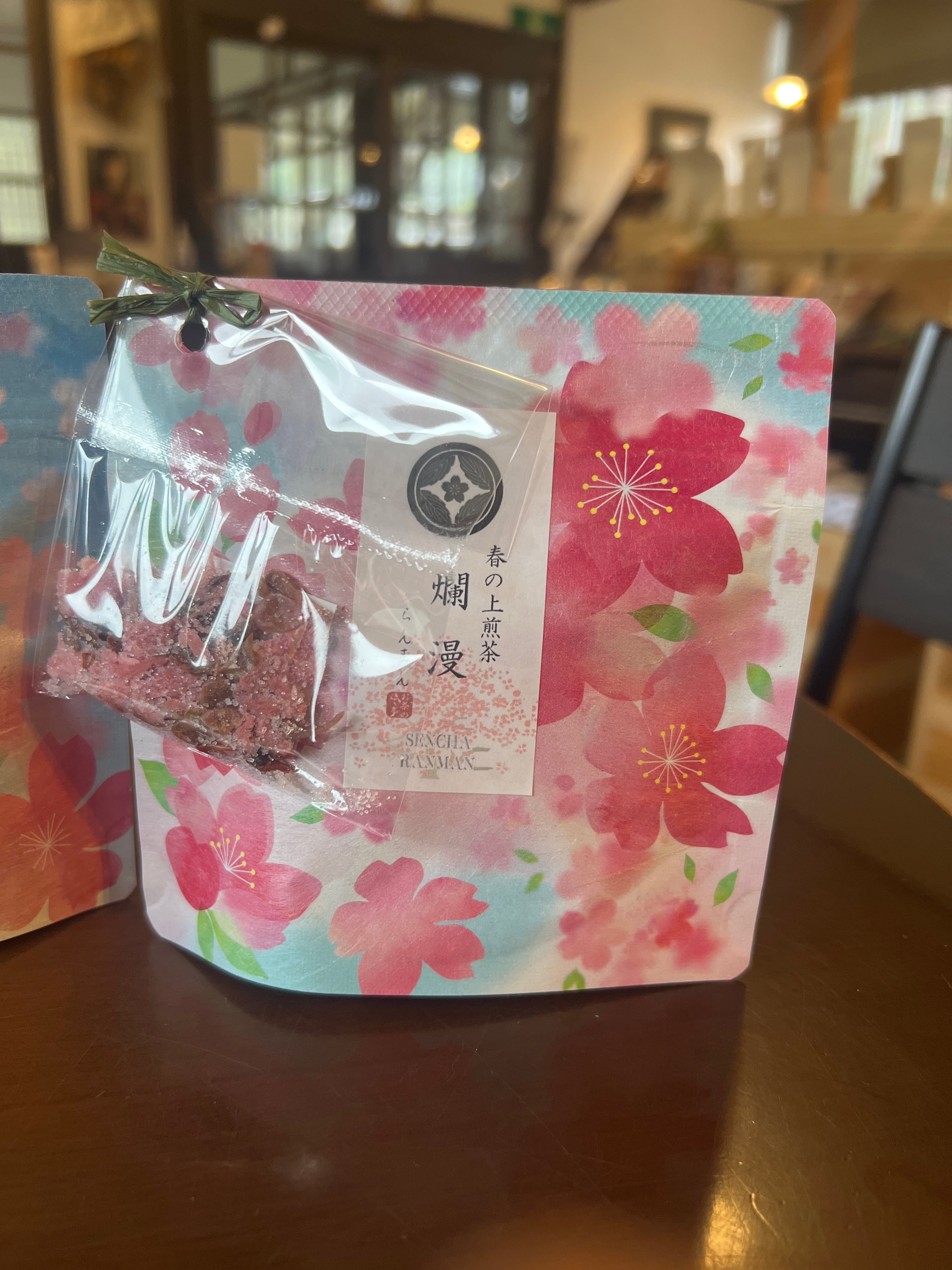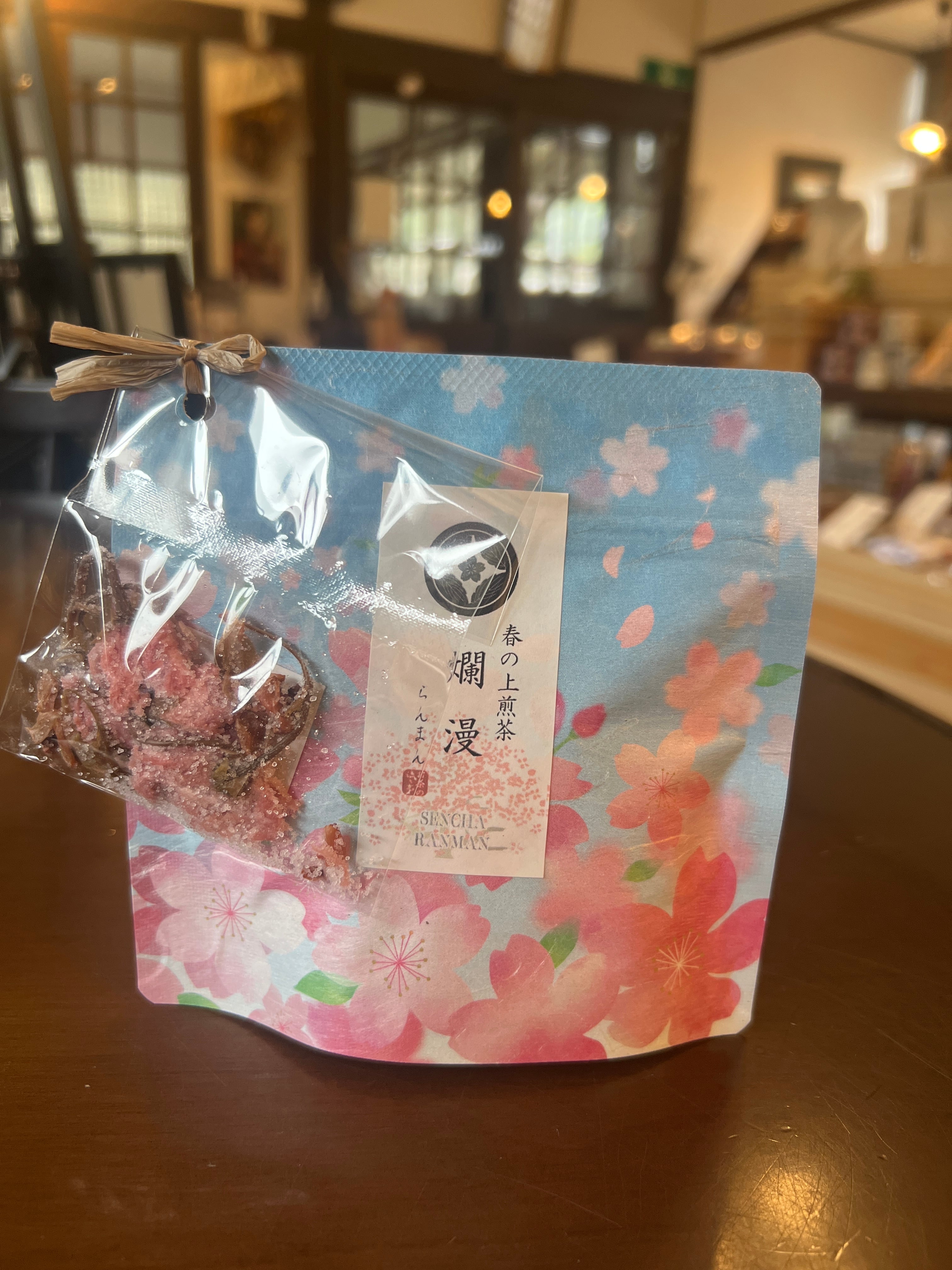 春の上煎茶ティーバッグ7包と、長野県の八重桜を塩漬けにした桜をセットにしました。
